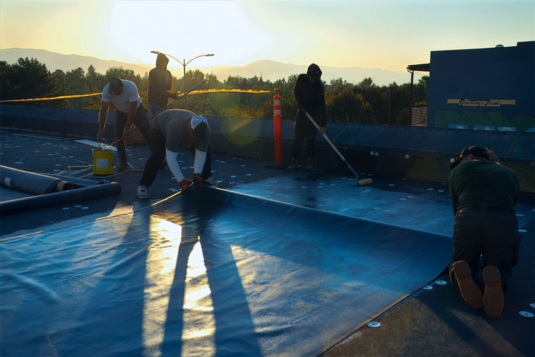 This page shows the installation process of fully-adhered EPDM rubber membrane to a flat roof in the heart of Missoula's downtown. We are really happy with how this roof came out and to share the process with you.